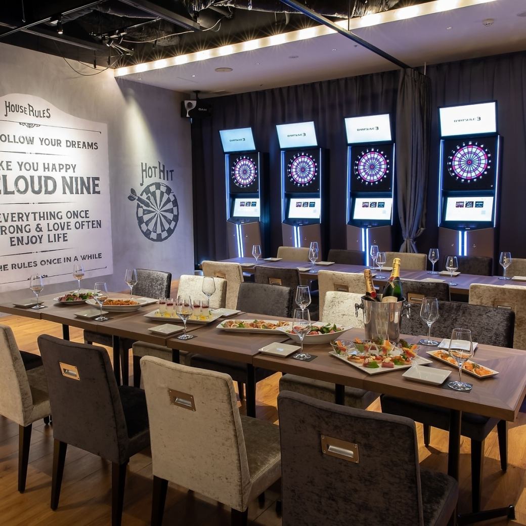 【JR橋本駅北口より徒歩約2分】「大画面モニター」「プロジェクター」「ダーツ」「マイク」「カラオケ」「音響」「充電器」ございます!クラブのようなオシャレな空間でダーツをお楽しみ頂きながら、バーならではの豊富なお酒もお楽しみ頂けます。ダーツ台は13台完備です。